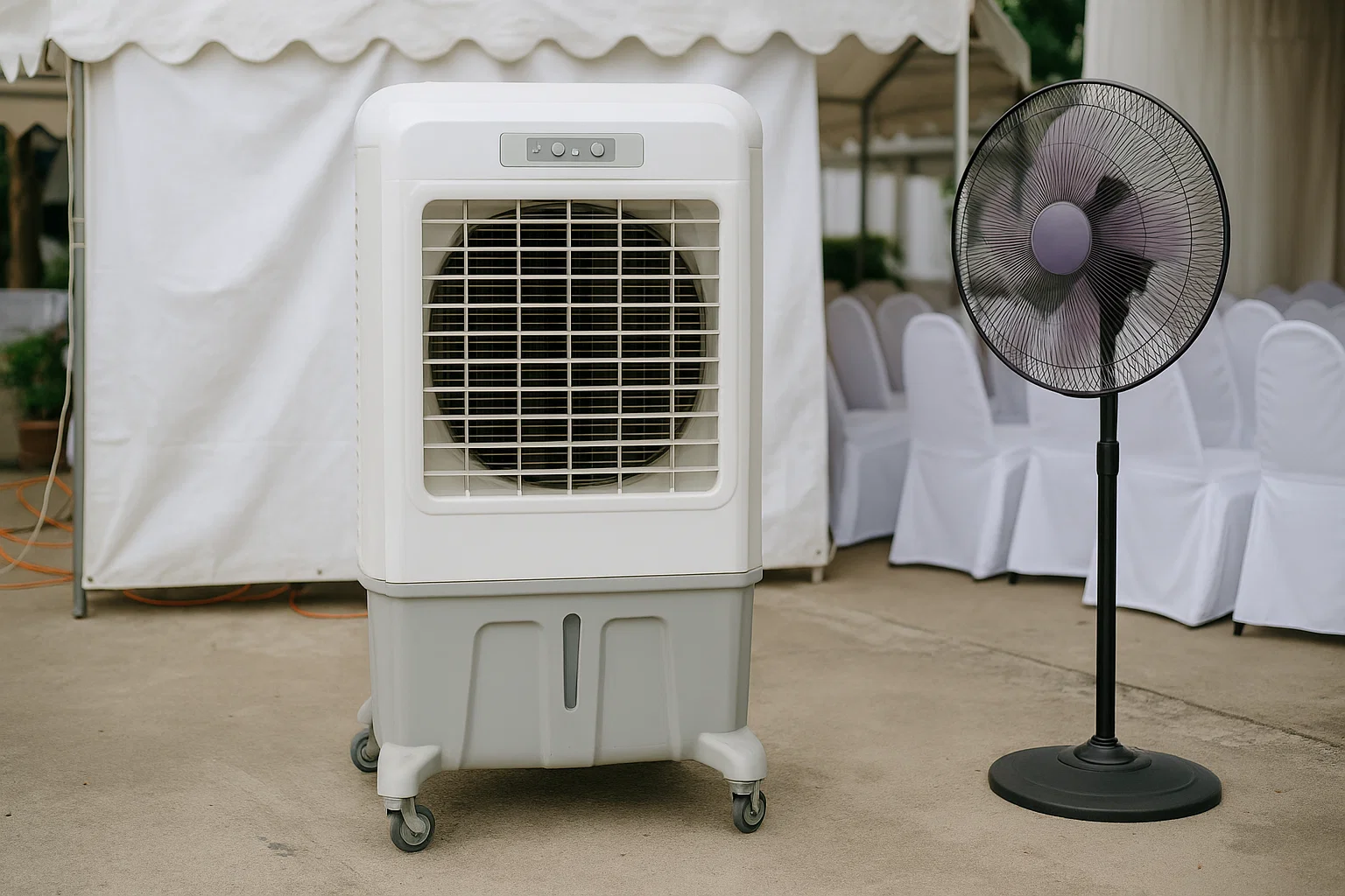 เมื่อพูดถึงงานอีเว้นท์กลางแจ้ง ภาพที่หลายคนกังวลมักหนีไม่พ้นเรื่องอากาศร้อน เหงื่อไหล เสื้อผ้าเปียก และแขกเริ่มหามุมหลบแดดแทนที่จะสนใจกิจกรรมบนเวที เจ้าภาพจำนวนมากจึงมองหาพัดลมไอเย็นมาเป็นตัวช่วยหลัก เพราะให้ความเย็นกว่าพัดลมธรรมดา ไม่เปลืองค่าไฟเท่าแอร์ และเคลื่อนย้ายได้ง่าย แต่คำถามสำคัญคือแบบไหนถึงจะเหมาะกับงานของเรา ทั้งในเรื่องขนาด ปริมาณ และตำแหน่งวาง บทความนี้ช่วยวางภาพรวมให้ชัด ตั้งแต่พื้นฐานของพัดลมไอเย็น วิธีเลือกตามขนาดพื้นที่ลมเดินทางได้จริง รายละเอียดที่ควรถามผู้ให้บริการ ตลอดจนเทคนิคเล็กๆ ที่ทำให้งานร้อนๆ กลายเป็นบรรยากาศเย็นสบายจนแขกอยากอยู่จนจบงาน